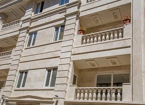 **الواجهات الخارجية**: يُعتبر حجر ترفنتين الإيراني اختيارًا مثاليًا لتنفيذ الواجهات الخارجية للمباني، سواء كانت للقصور أو الفيلات أو الفنادق. تتميز هذه الواجهات بالأناقة والقوة والمتانة، مما يجعلها تستحق الإعجاب وتجذب الانتباه.