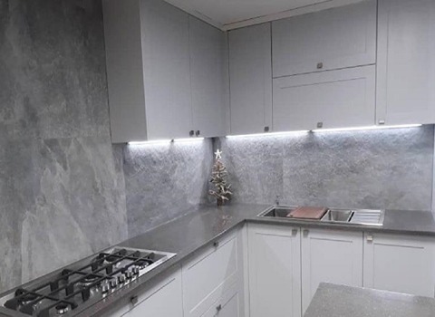 لا يقتصر استخدام السيراميك الرمادي على الأرضيات والأسطح فقط في المطبخ، بل يمكن أيضًا استخدامه في تصميم الجدران وحتى في تصميم السقف.