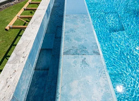 كما يوفر البلاط الأزرق الفاتح مرونة كبيرة في التصميم، حيث يمكن استخدامه بشكل فردي أو بتنسيق مع بلاط من نفس الدرجة اللونية لإضفاء تباين جمالي.