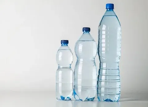 بشكل عام، يتم إنتاج الزجاجات في شكلين، PET والبولي إيثيلين، أي نوع من البولي إيثيلين يستخدم على نطاق واسع.