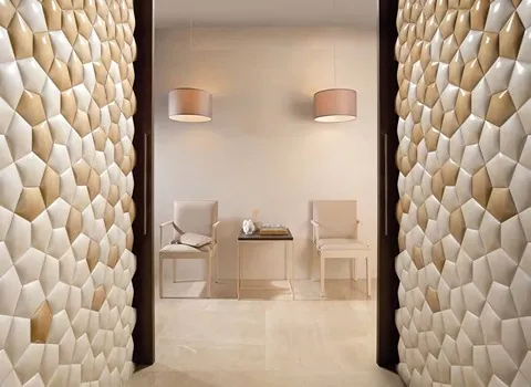 يستخدم البلاط ثلاثي الابعاد للزخرفة الداخلية والخارجية للمباني.