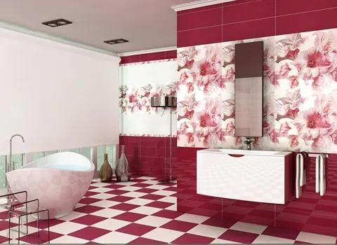 يمكنك تجميع ألوان مختلفة معاً لإنشاء تأثيرات بصرية مبتكرة وجريئة، ويمكنك أيضاً تجربة النقوش والزهور والأشكال الهندسية لإضفاء لمسة فنية وإبداعية على حمامك.
