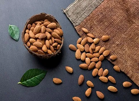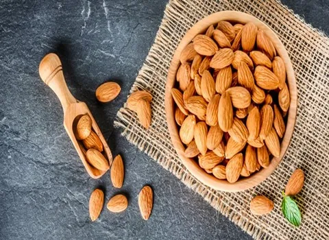 اللوز يحتوي على نسبة عالية من البروتين والدهون الصحية والألياف، ويعتبر مصدرًا جيدًا للفيتامينات والمعادن، مثل فيتامين E والمغنيسيوم والكالسيوم.