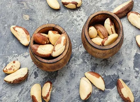 اللوز البرازيلي غني بفيتامين E وفيتامين C والثيامين والنياسين و B6 وحمض الفوليك والكولين ومصدر ممتاز للسيلينيوم.