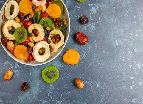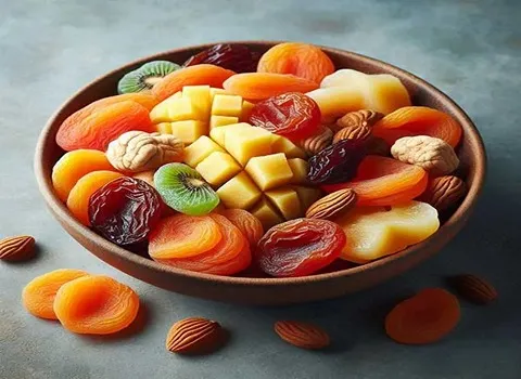 فالفواكه المجففة تعتبر خياراً ممتازاً لتناول الفواكه بشكل يومي، حيث تحتوي على نسبة عالية من الألياف والمواد الغذائية الصحية.