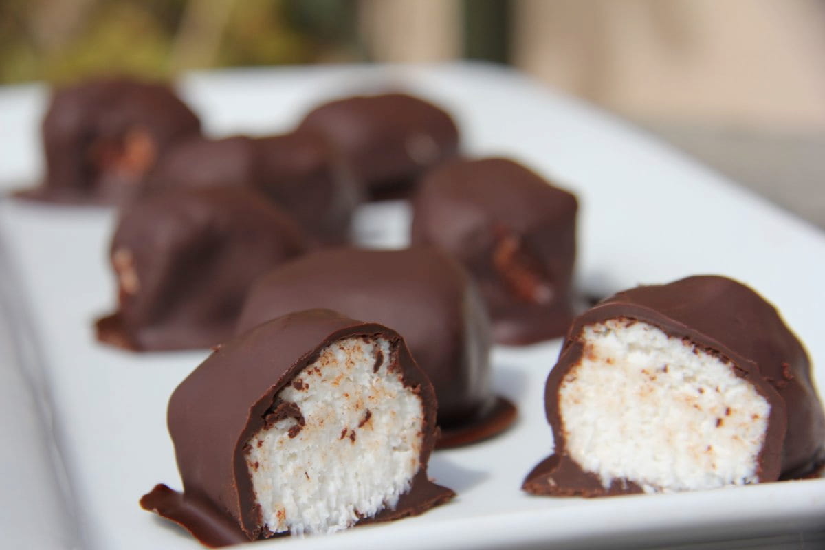 شوكولاتة جوز الهند، وهي مزيج من جوز الهند مع طلاء الكاكاو، طعمها رائع حلو.