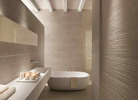 يمكنك الاختيار من بين السيراميك البيج ذو التصاميم البسيطة والنقشات البسيطة التي تعطي للحمام شكلًا أنيقًا وأنثويًا، أو يمكنك اختيار السيراميك البيج ذي التصاميم العصرية والجريئة للحصول على مظهر حمام عصري ومبتكر.