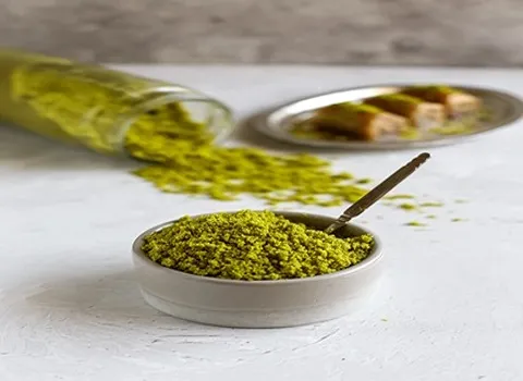 يمكنك استخدام الفستق المطحون الناعم في تحضير الحلويات مثل الكعك والبسكويت والحلوى، حيث يعطي نكهة لذيذة وقوامًا غنيًا.