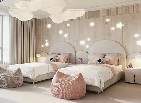 يمكنك استخدام تدرجات ناعمة من الألوان الهادئة لإضفاء طابع مريح ورقيق على الغرفة؛ على سبيل المثال، يمكن دمج اللون الأبيض مع لون بيج فاتح لخلق جو هادئ وأنيق في غرفة الطفل.