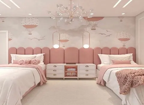 يمكنك تحقيق تصميم داخلي مميز في غرفة الطفل باستخدام الدهانات الهادئة مع تداخل بعض العناصر الديكورية الإبداعية؛ ابحث عن ورق الجدران المنسوج أو لوحات الحائط الزخرفية البسيطة التي تعزز جمالية الغرفة وتضيف لمسة فنية جميلة.