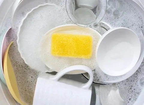 يمكنك إضافة لمسة من ملح غسيل الصحون إلى الماء الساخن أثناء غسل الأواني يدويًا للمساعدة في التخلص من الدهون والبقع بسهولة.