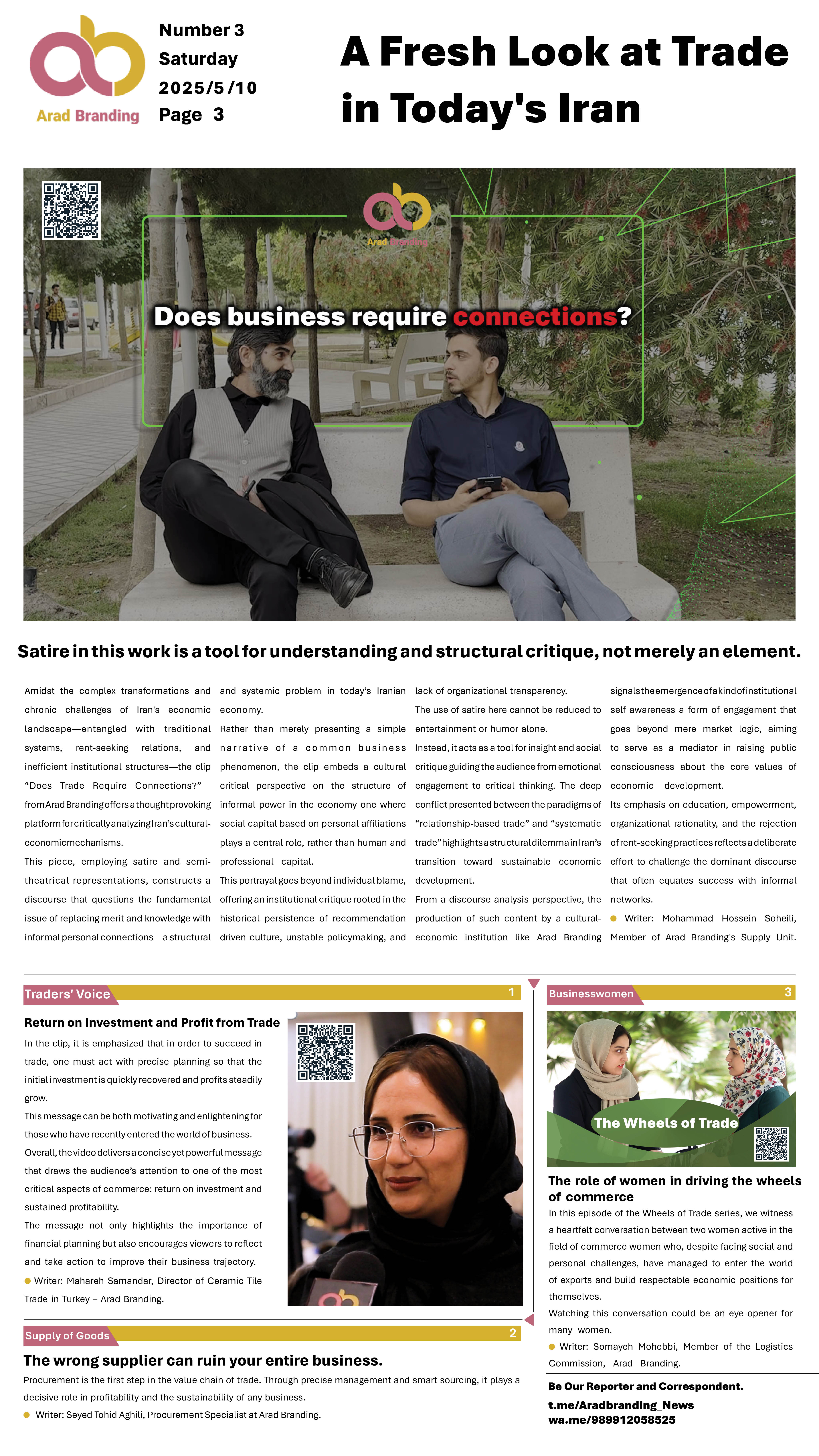 إكمال هذا النظام إلزام يومي للتجار الذين يشغلون مناصب تنظيمية وكذلك موظفي آراد برندينك. عدم الالتزام به سيؤدي إلى تقليل منافعهم المالية.