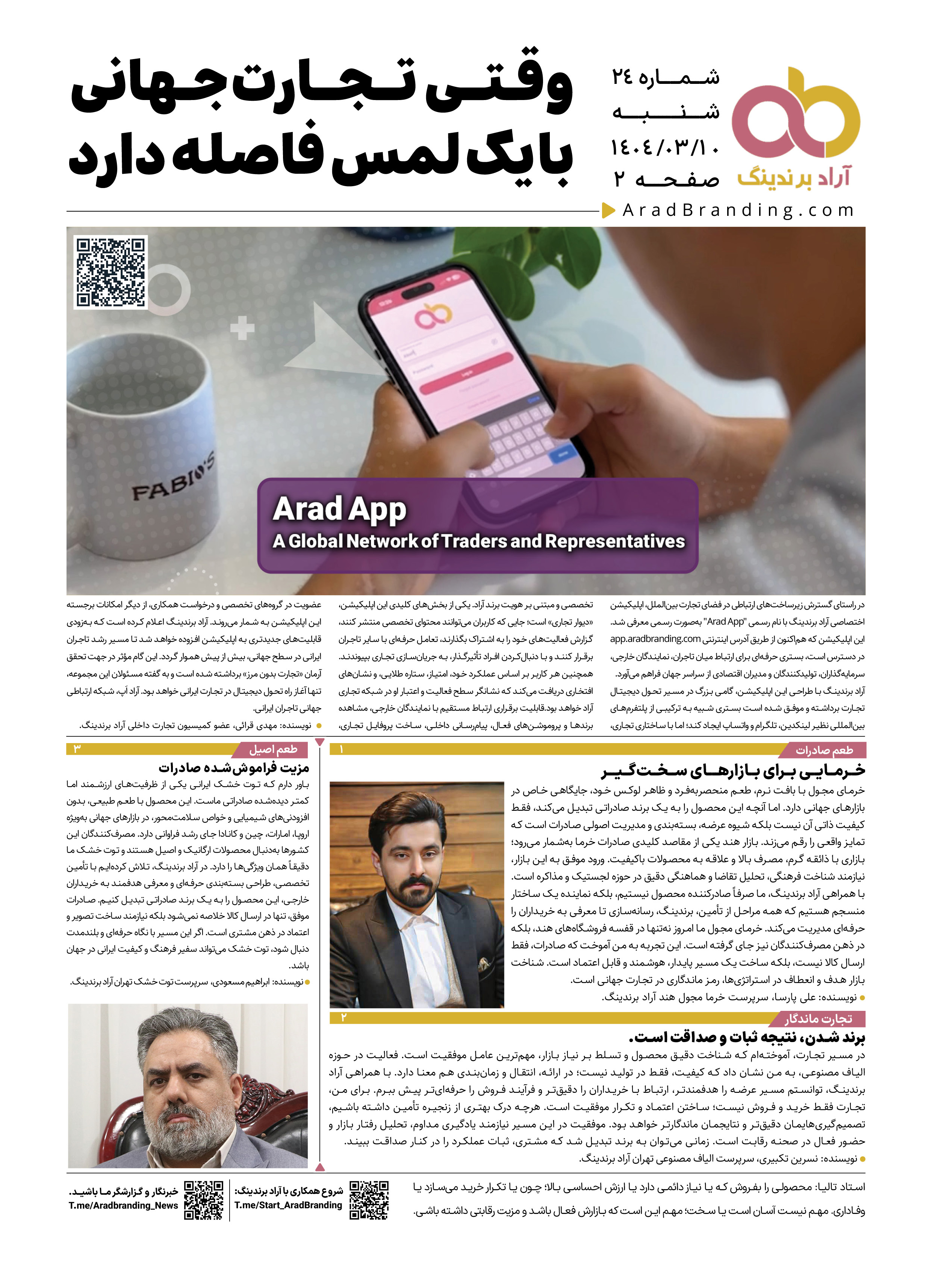 في ضوء هذا الحديث، التجارة المعتمدة على الفرد مليئة بالتبعية والخوف، أما التجارة مع منظمة مثل آراد التي تقوم على القيم، العلم والخبرة، فهي ثابتة وناجحة.
