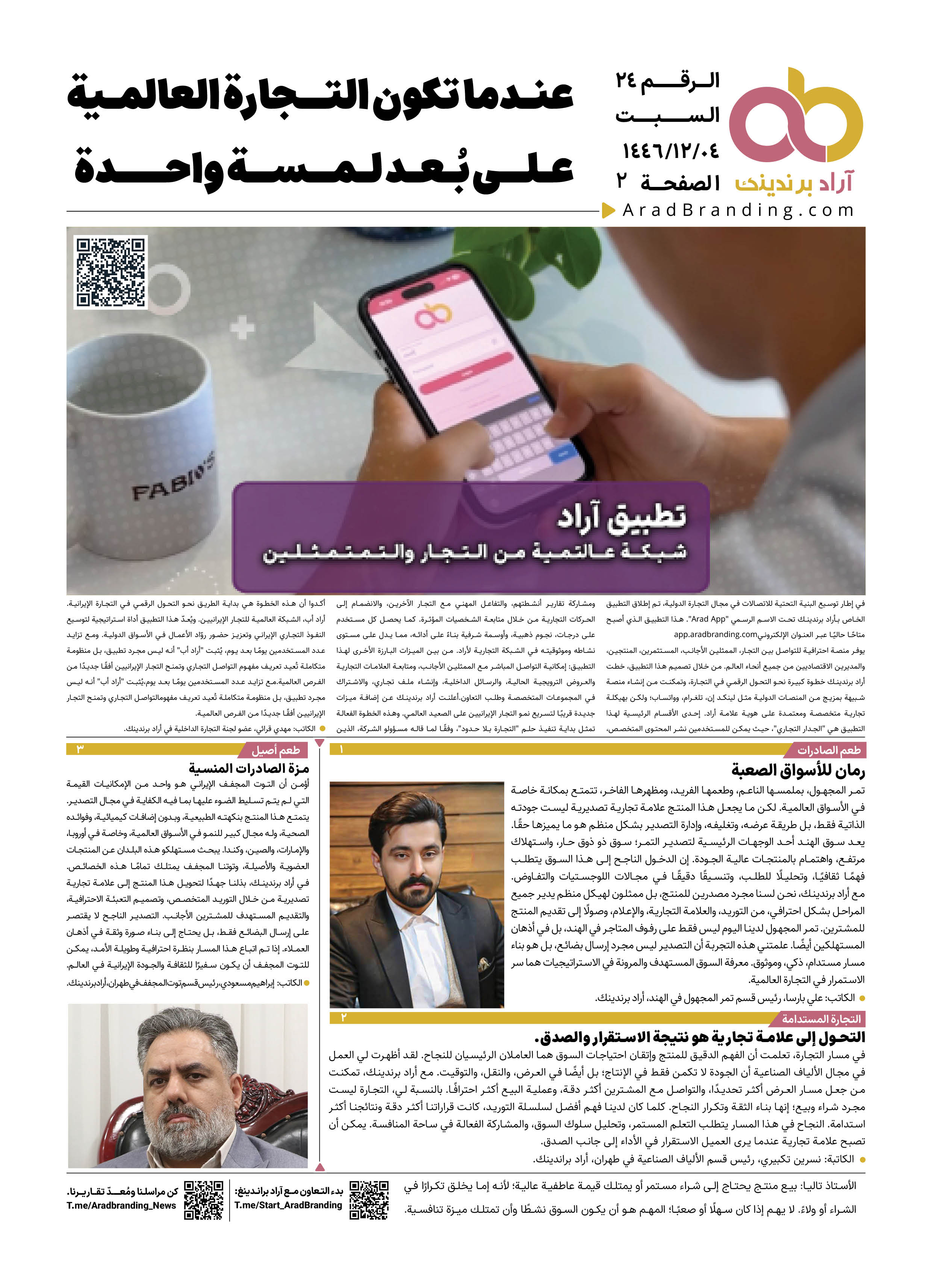 «تم تفعيل الصفحة الرسمية لتجاري على موقع آراد برندينك. من الآن فصاعداً، تابع أخبار عملي من هنا: (الرابط)»