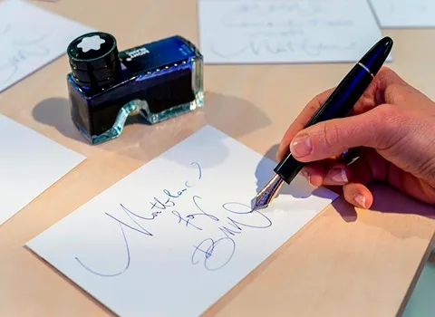 اختر قلم الحبر السائل واستمتع بتجربة كتابة استثنائية تجعل كل كلمة تتألق بأناقة ودقة.