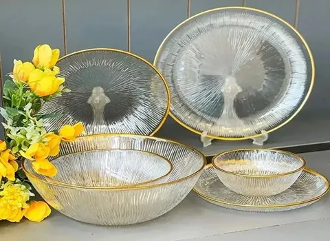 لا يقتصر دور طقم الأطباق الزجاجية على تقديم الطعام فقط، بل يمكن استخدامها أيضًا في تقديم المقبلات، الحلويات، الأطباق الجانبية وحتى التوابل أو المكسرات.