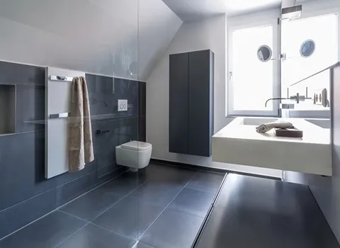 علاوة على ذلك، يمكنك الاستفادة من مزايا السيراميك بلون رصاصي كونها مواد قوية ودائمة تتحمل الاستخدام المتكرر في الحمامات.