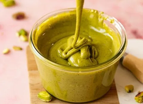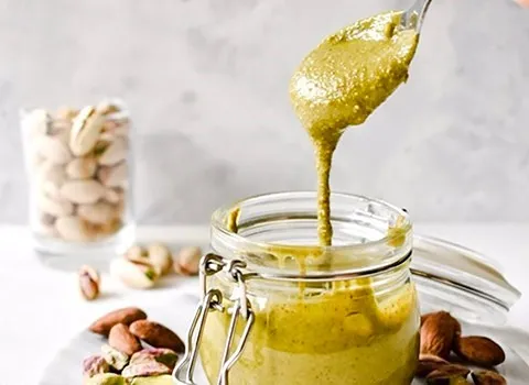 كما يمكنك أيضًا تحضير زبدة الفستق الخاصة بك في المنزل باستخدام الفستق الطازج وملعقة زيت جوز الهند أو زيت الزيتون لتخلق نكهة فريدة وخالية من المواد الحافظة.