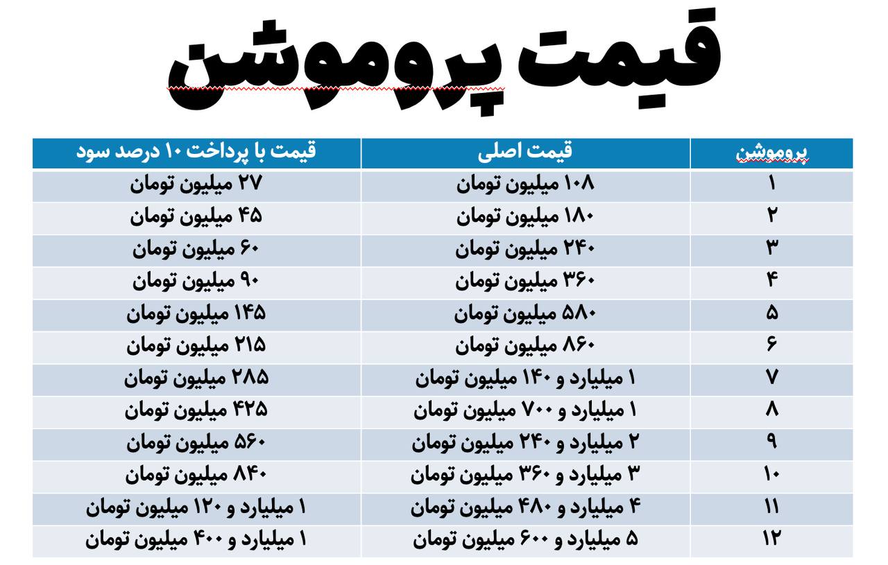 أو إذا كان لديه ترويج 11 ودفع 1.12 مليار تومان بنيّة دفع 10% من الأرباح، وتم التأكد من عدم دفعها، فسيتم تعديل عقده إلى الترويج 7، الذي يبلغ سعره الأصلي 1.14 مليار تومان.