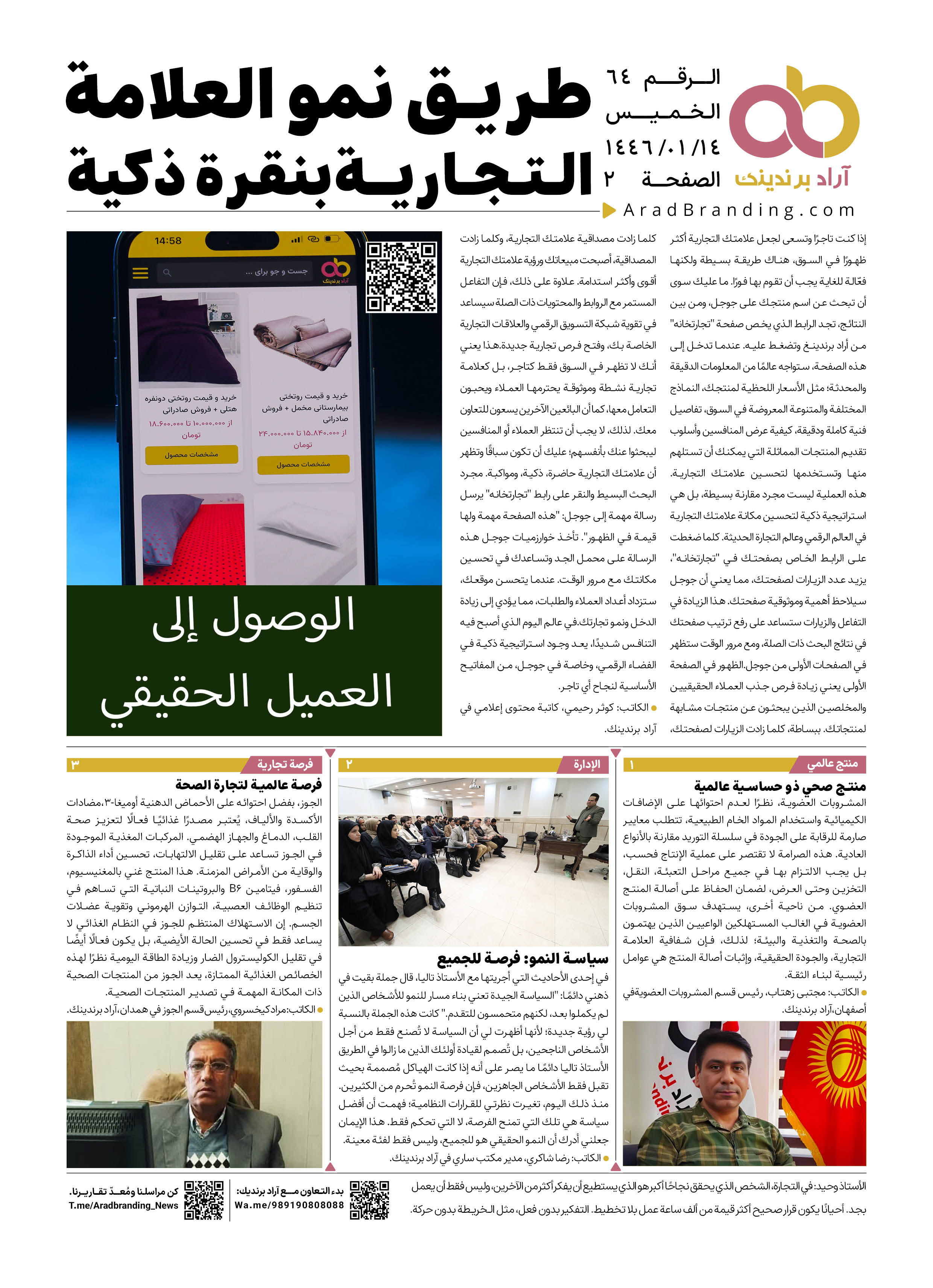 لإرسال محتوى للنشر في جريدة آراد برندينك تحت اسمك، راسل معرف التليجرام أدناه.