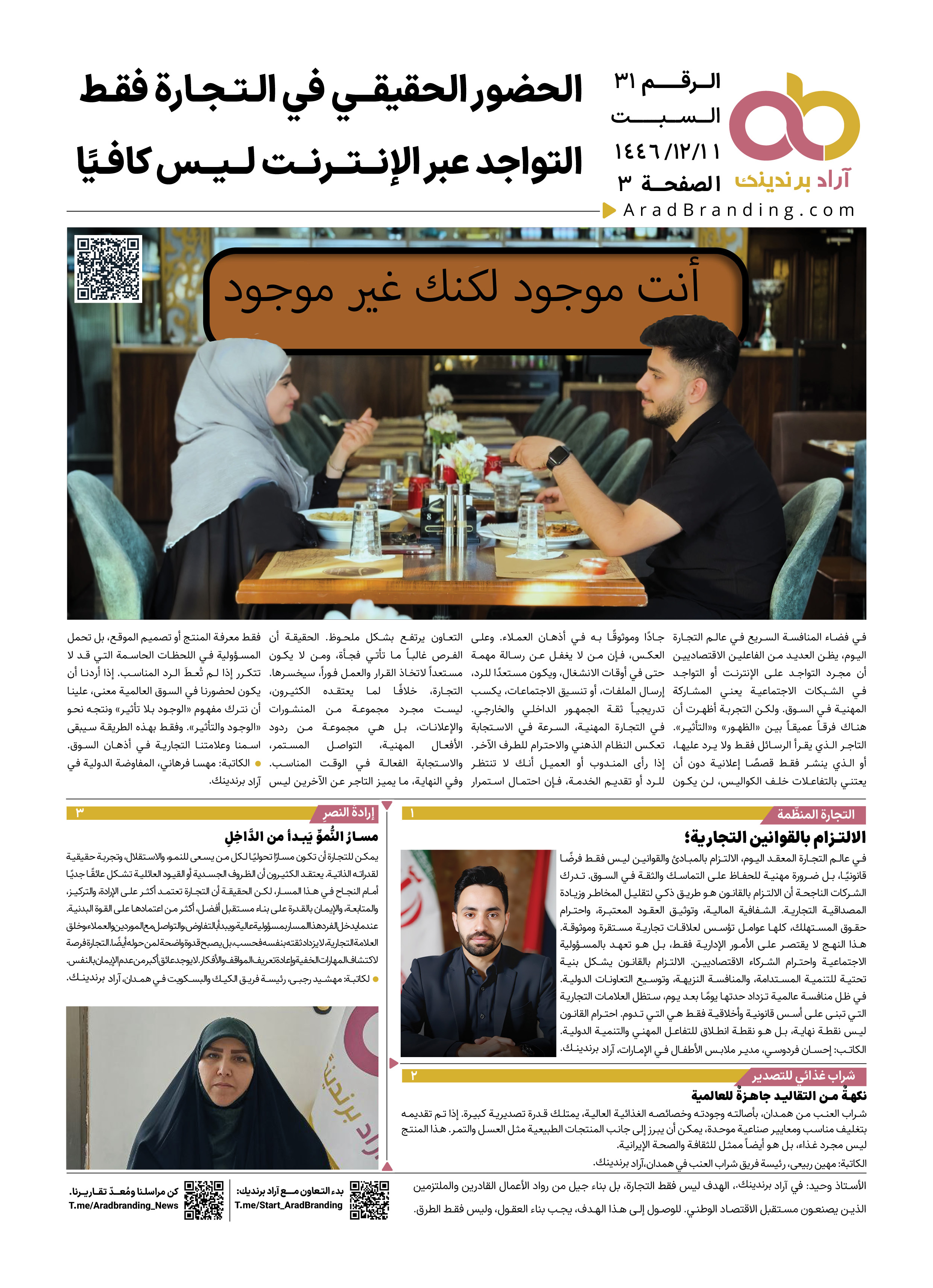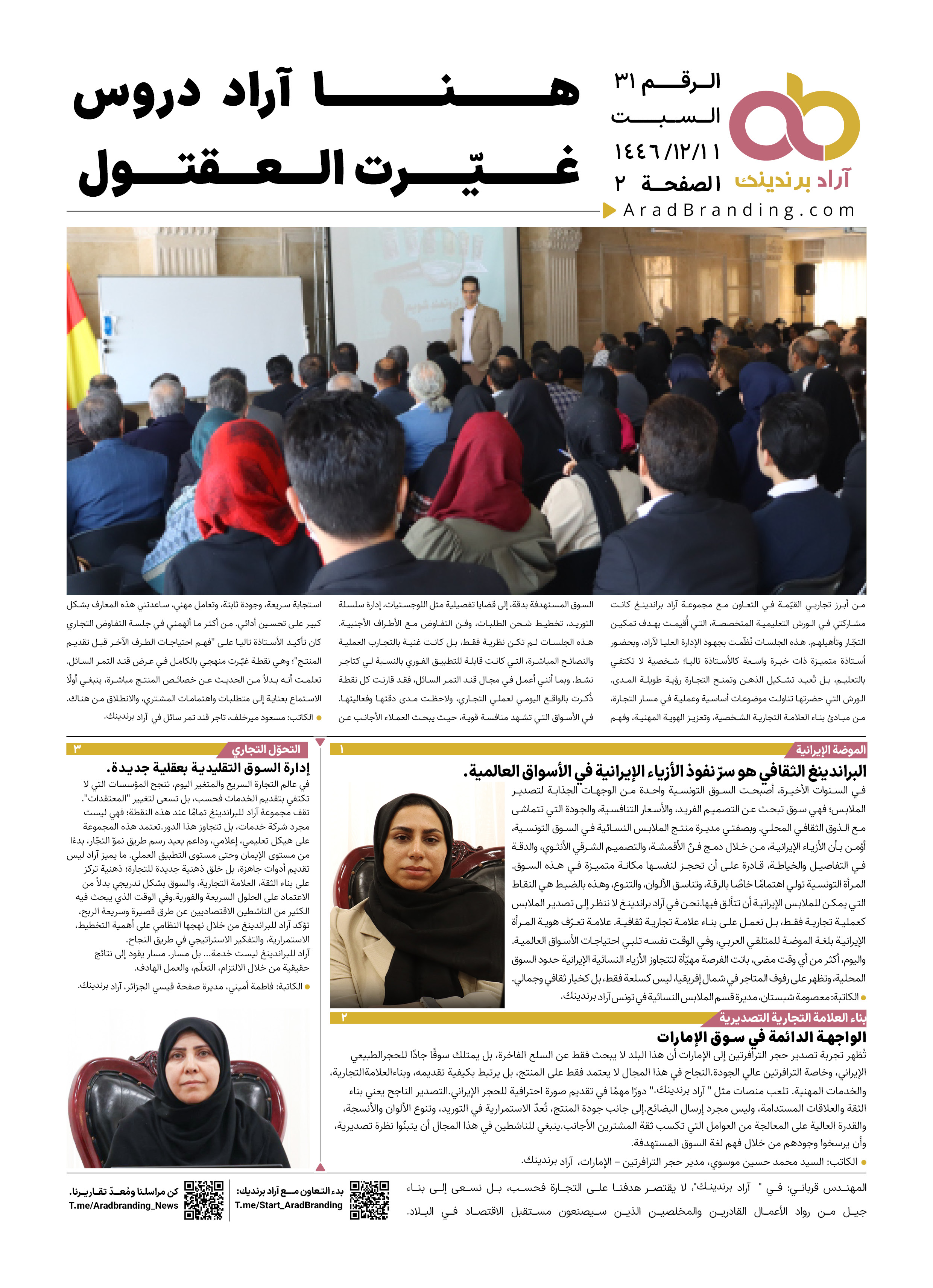 - خراسان الرضوية، ١١ يونيو الساعة ١٧:٠٠، كيفية الحصول على عملاء جدد من دار التجارة وبرنامج آراد برندينك؟ aradbranding.com/Marvi