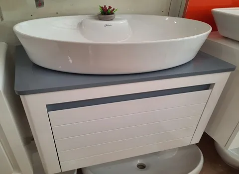 رابعًا، يوجد حوض الغسيل المدمج بالأثاث، وهو الحل الأمثل لمن يبحثون عن جمالية وتوفير المساحة في الحمام أو المطبخ.
