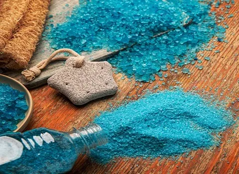 ثانياً، يجب الانتباه إلى درجة نقاوة الملح الأزرق، حيث يفضل اختيار المنتج الذي لا يحتوي على أي إضافات كيميائية أو مواد حافظة.
