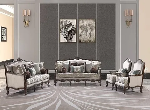 تفاصيل النقوش الدقيقة والتصاميم الأنيقة تجعل هذا النوع من الكنب قطعة فنية بحد ذاتها، ويمكن أن تكون إضافة جميلة تبرز جمالية المكان.