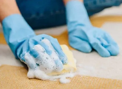 بعد ذلك، يتم استخدام فرشاة خاصة أو قماشة ناعمة لفرك السجاد وتوزيع المنظف بشكل متساوٍ على جميع الأجزاء.