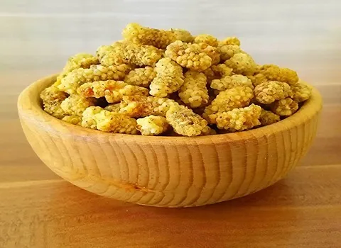 كما أن توت إيران المجفف يمكن استخدامه في تحضير مجموعة متنوعة من الأطباق، بما في ذلك الحلويات والمعجنات والسلطات، مما يجعله خيارًا مثاليًا لتنويع نظام الغذاء اليومي وإضافة لمسة من النكهة والقيمة الغذائية للوجبات.