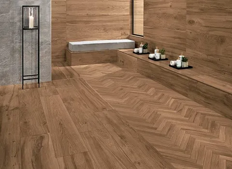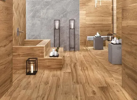 بفضل القدرة الرائعة على تقليد الخشب بشكل واقعي، يمكن للسيراميك الخشبي أن يعطي طابع الطبيعة والأصالة للغرفة، دون الحاجة إلى تكلفة باهظة لتركيب وصيانة الأرضيات الخشبية الحقيقية.
