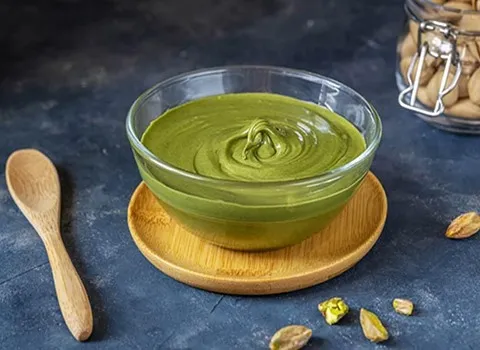 فهي تعتبر عنصرًا مشهورًا في العديد من الحلويات الشرقية، مثل البقلاوة والكنافة والحلاوة الطحينية، حيث تضيف نكهة فستقية عميقة ومميزة لهذه الأطباق.