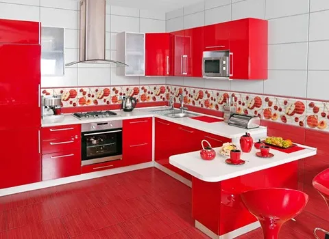 2. **تحفيز الشهية**: يعتبر اللون الأحمر من الألوان المشهورة بقدرتها على تحفيز الشهية، لذلك يمكن أن يكون مثاليًا لإضفاء جو من الحيوية والنشاط في المطبخ.