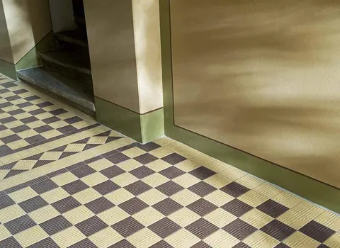 منتجات بلاط العادي مقاومة للحريق وتظهر مقاومة كبيرة للرطوبة والوزن الثقيل وبقع الزيت.