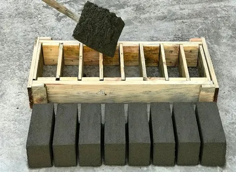 نسبة الرمل، المنتج النهائي للكتلة الأسمنتية ذات اللون البني الفاتح، بسطح أملس وقوة ضغط عالية، حيث تزن وحدة الطوب الأسمنتية النموذجية بين (17.2-19.5 كجم)، يمكن استبدال الأسمنت بالرماد المتطاير.