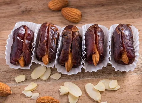 التمر المحشي باللوز له طعم لذيذ وفوائد صحية مذهلة.