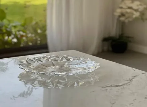 صحن تقديم الزجاج يعتبر تحفة فنية بحد ذاتها، حيث يمنح الزجاج المشع لمسة من السحر والجمال إلى أي مكان يوضع فيه.