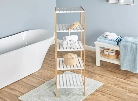 بفضل التصميمات المتنوعة لرفوف الحمام الخشبية، يمكنك اختيار النمط الذي يناسب احتياجاتك من حيث عدد الرفوف والأبعاد، مما يسمح لك بتخصيص المساحة التخزينية وفقًا لاحتياجاتك الفردية.