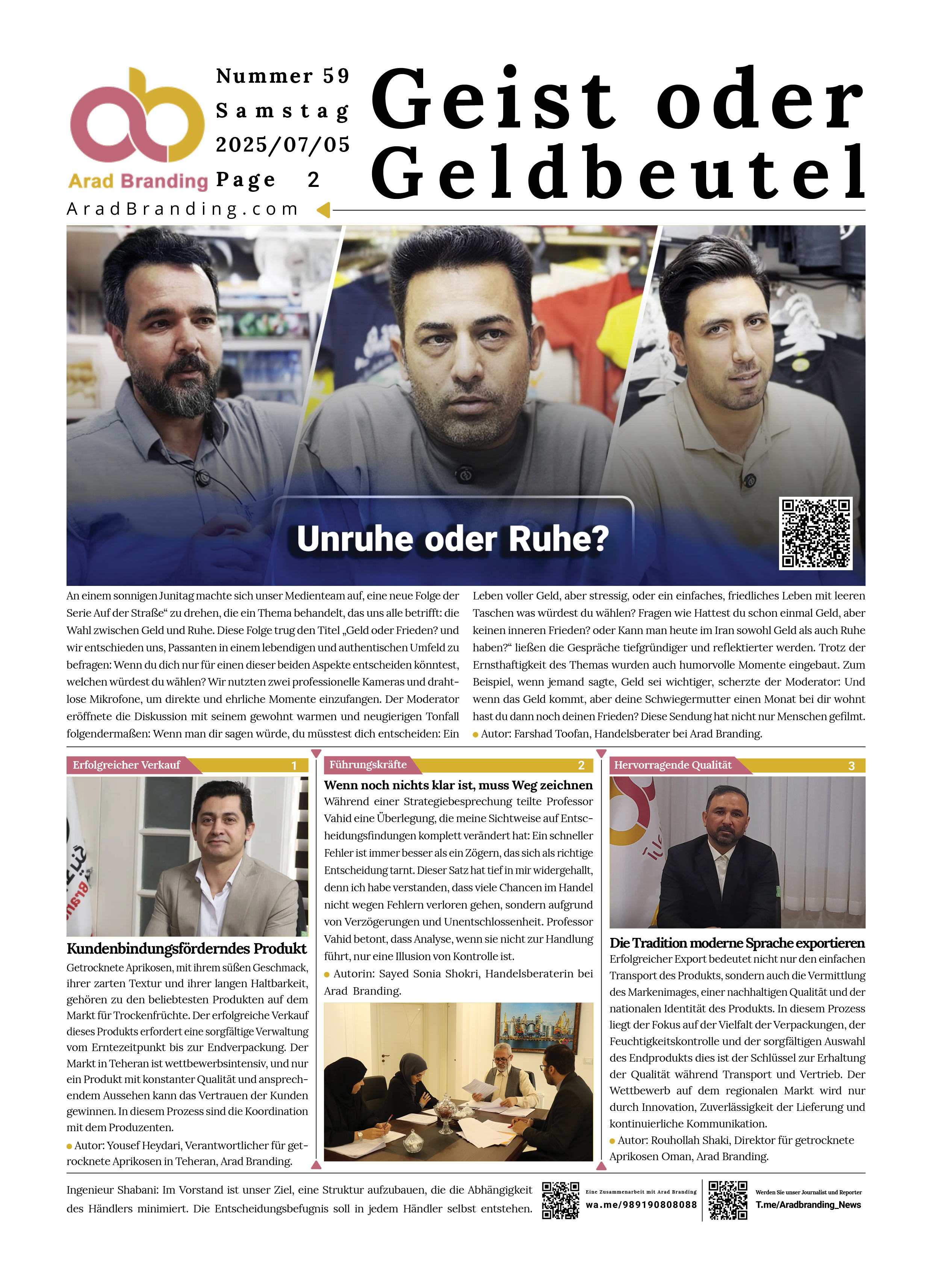 Wenn Sie Inhalte unter Ihrem Namen in der Arad Branding Zeitung veröffentlichen möchten, senden Sie eine Nachricht an die untenstehende Telegram-ID.