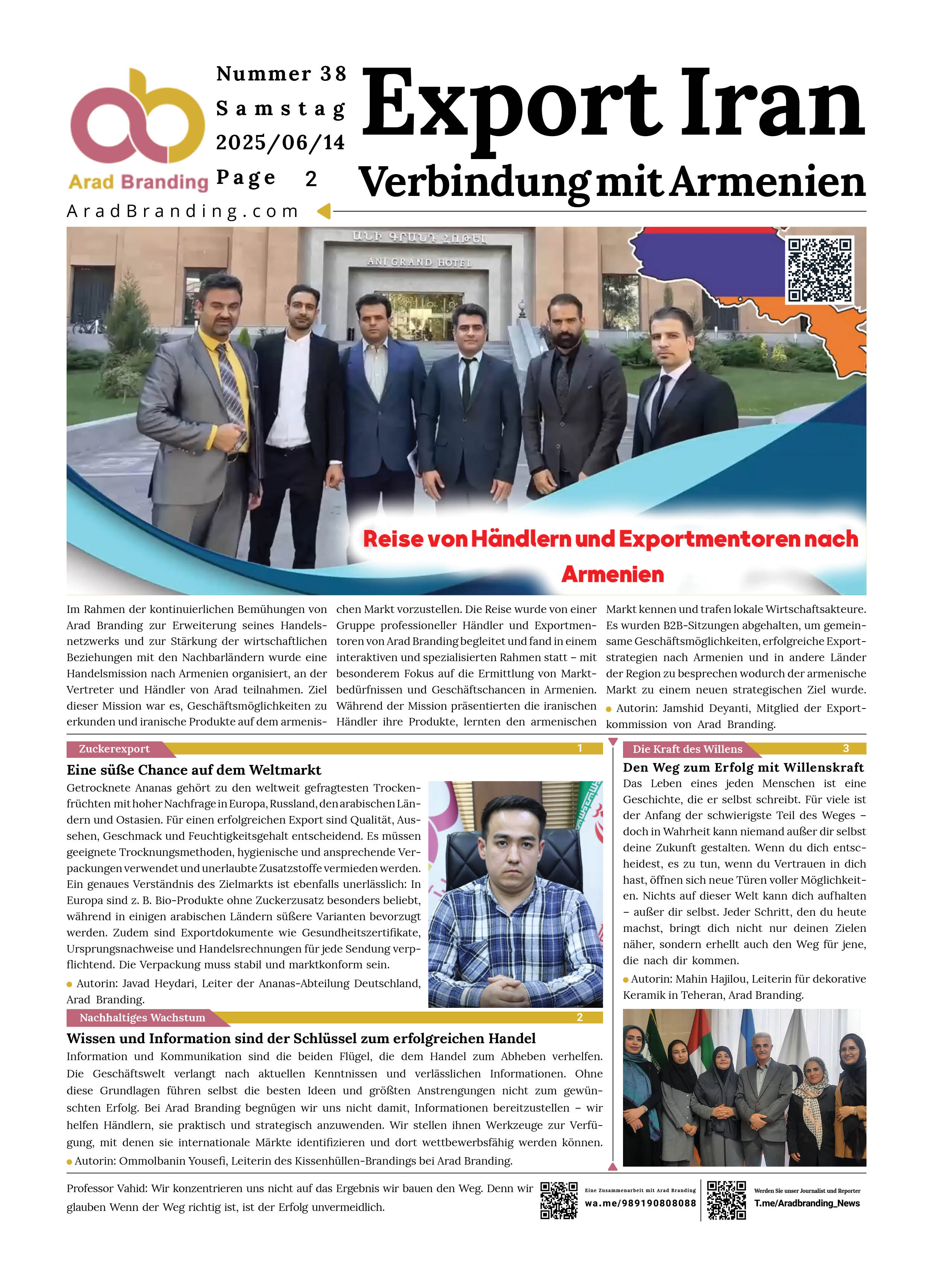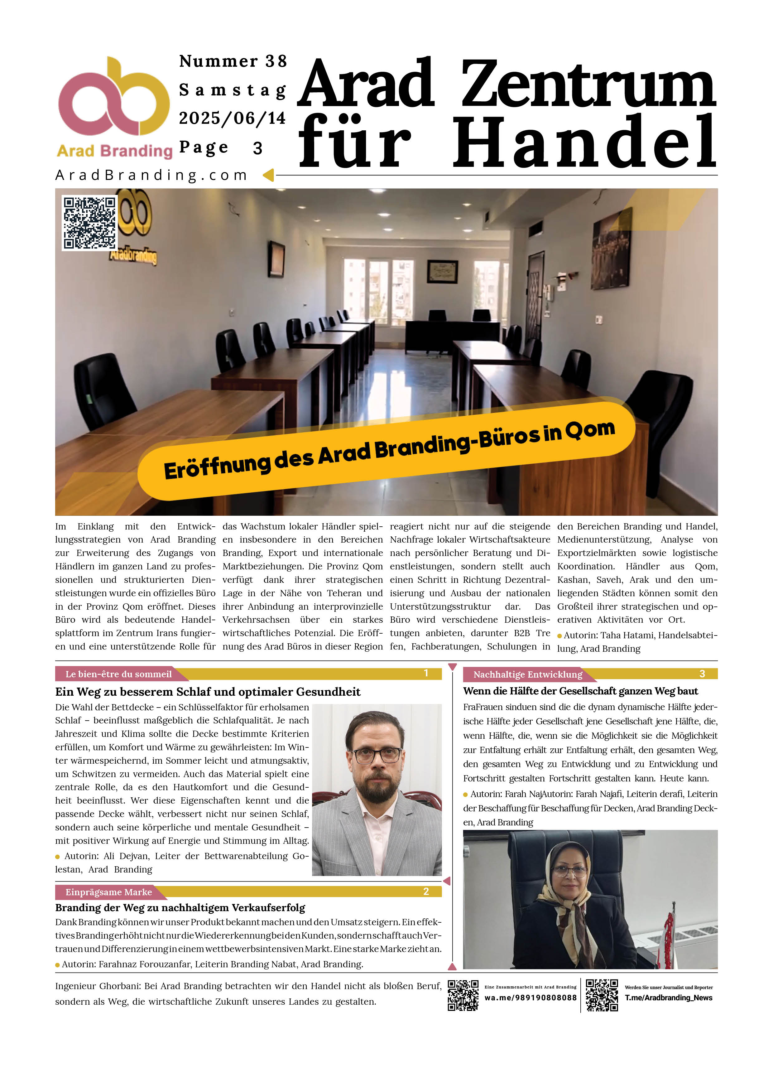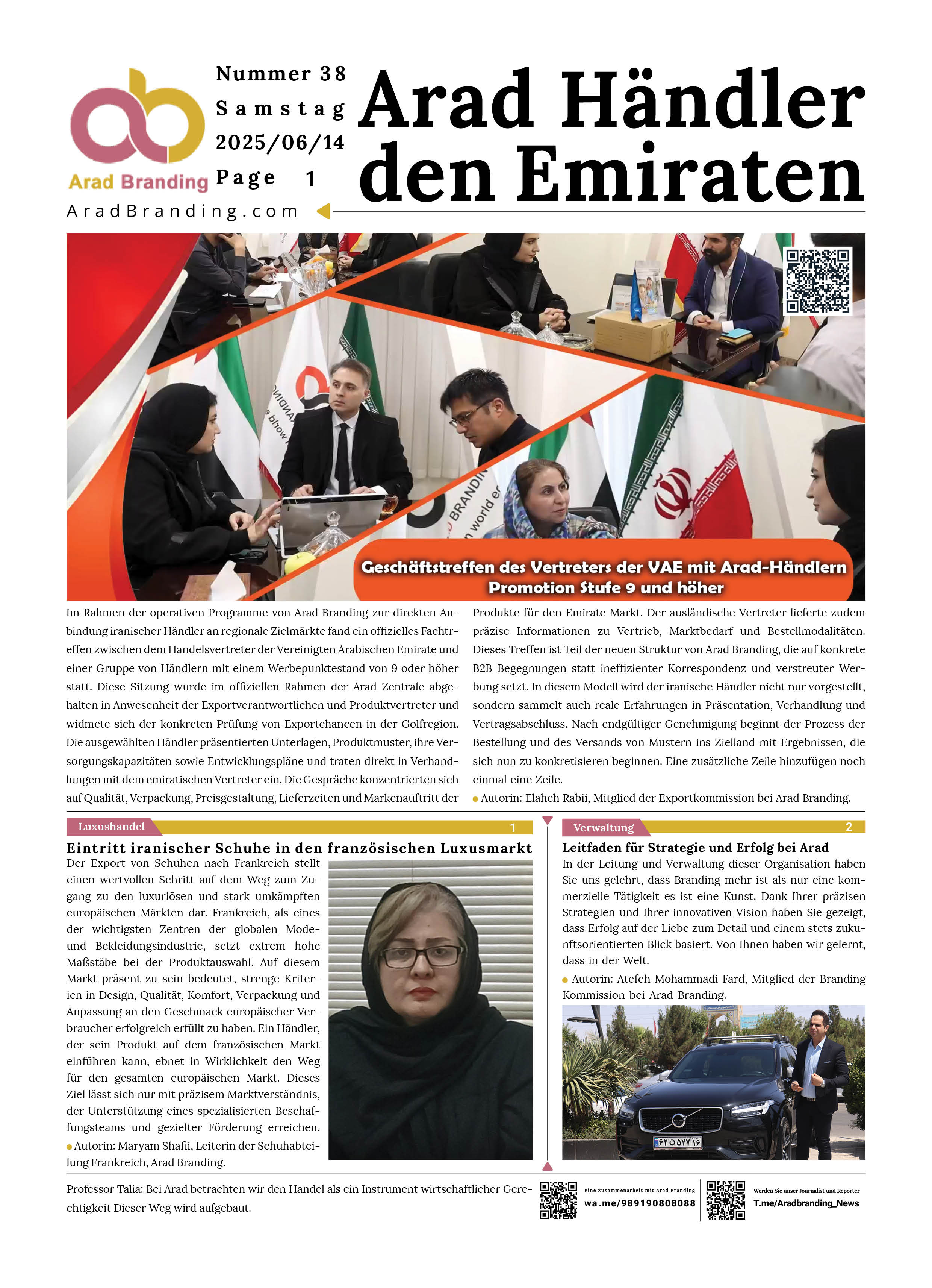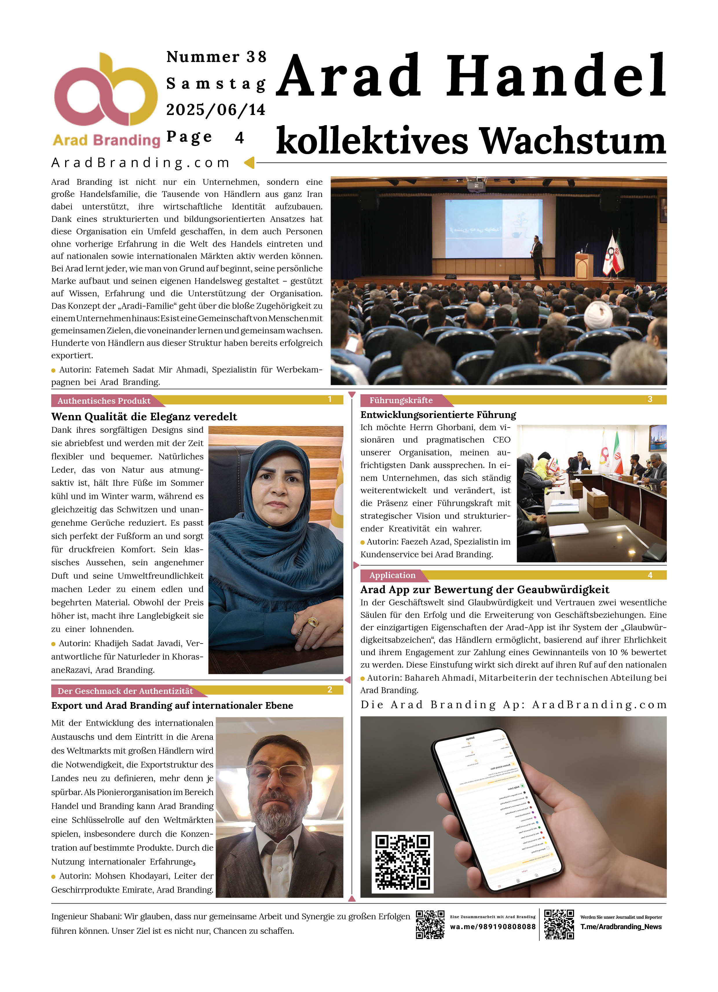 - Isfahan, 15. Juni um 16 Uhr, Installation der Arad Branding Software und Verbindung mit Händlern und ausländischen Vertretern, aradbranding.com/gholami