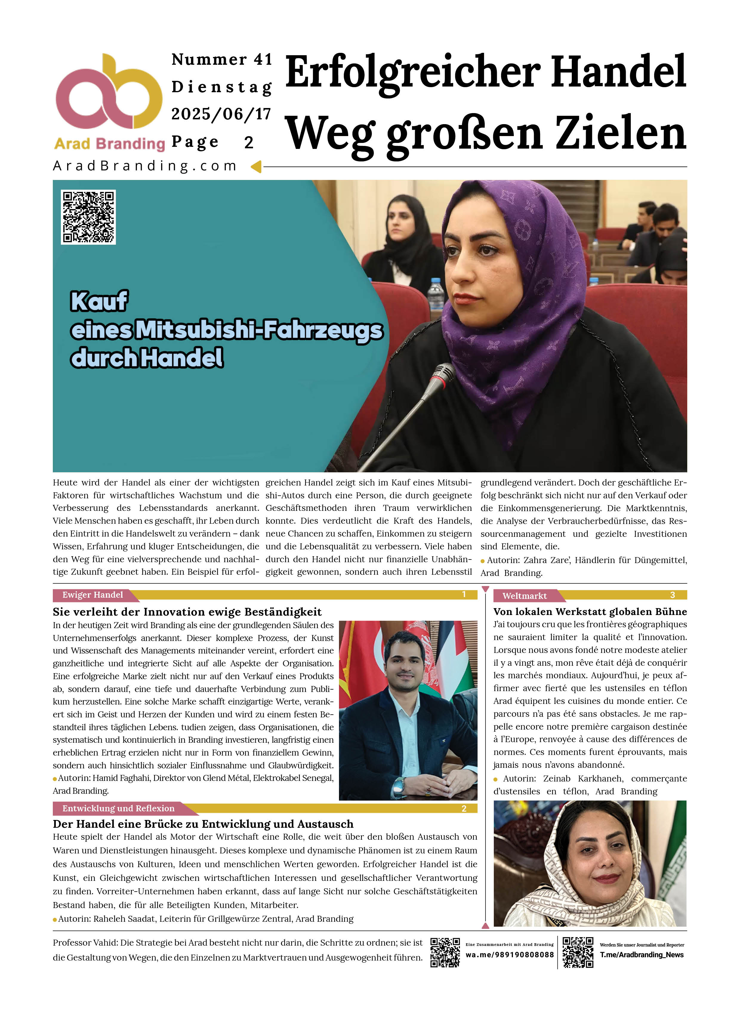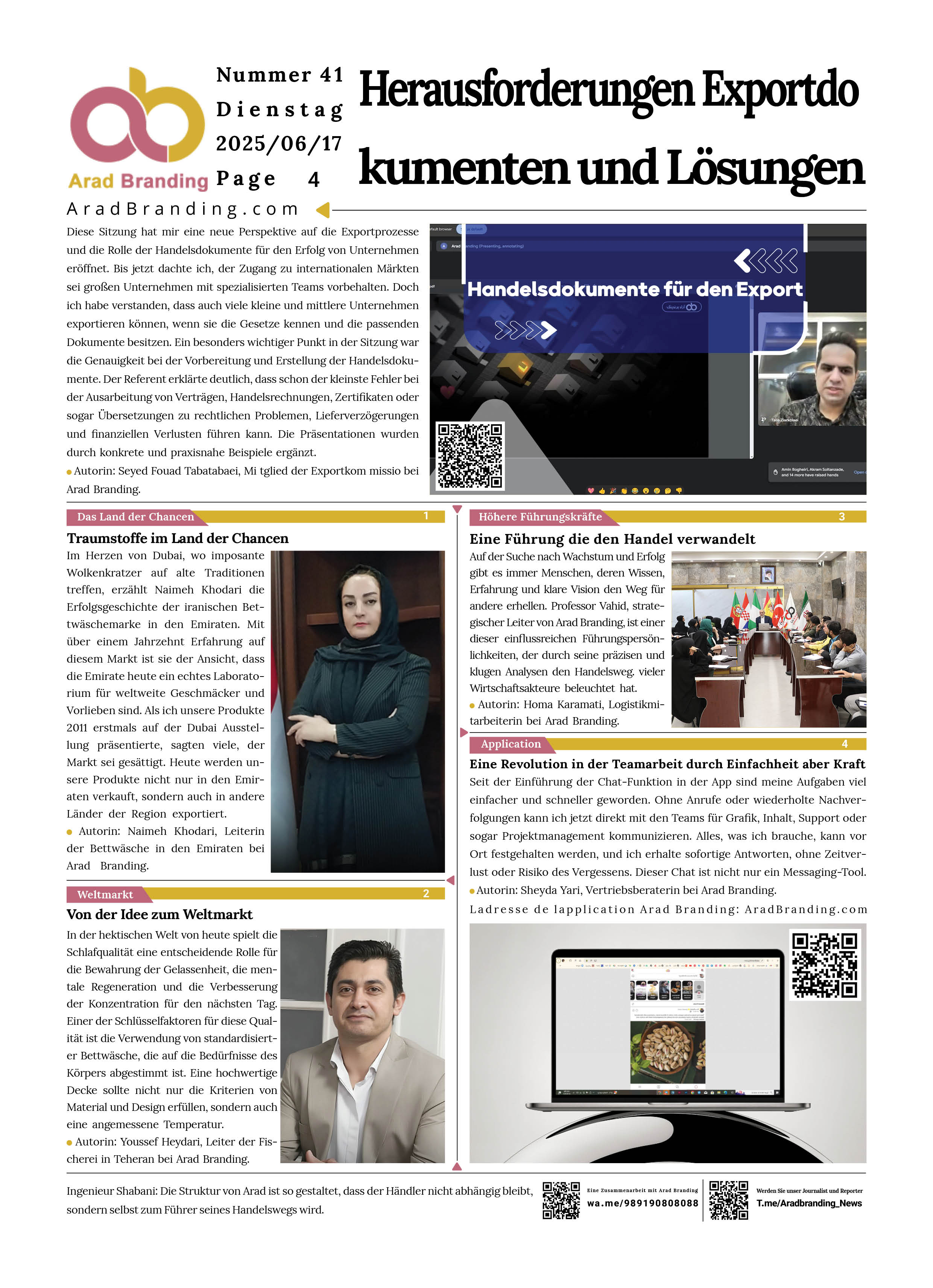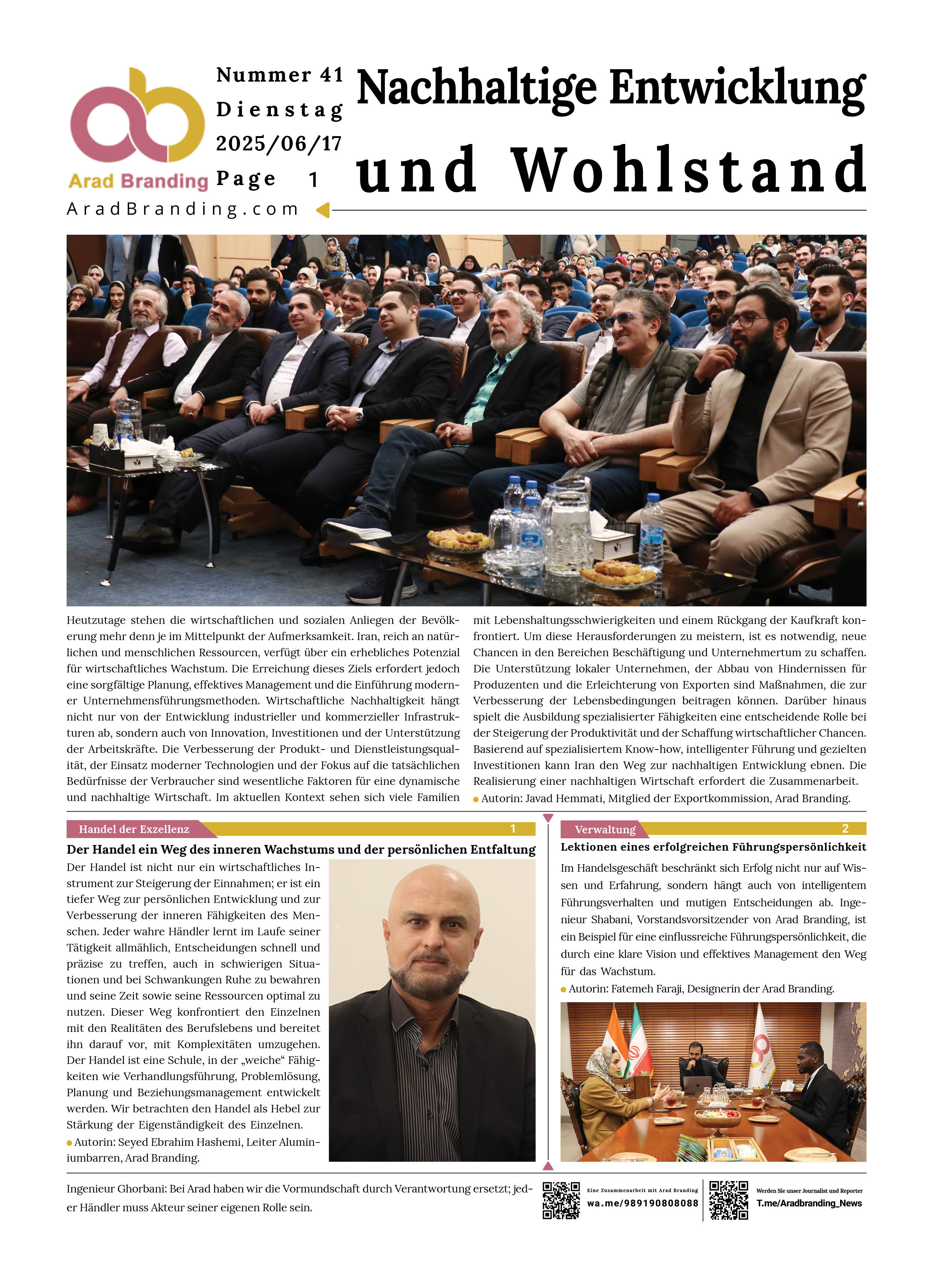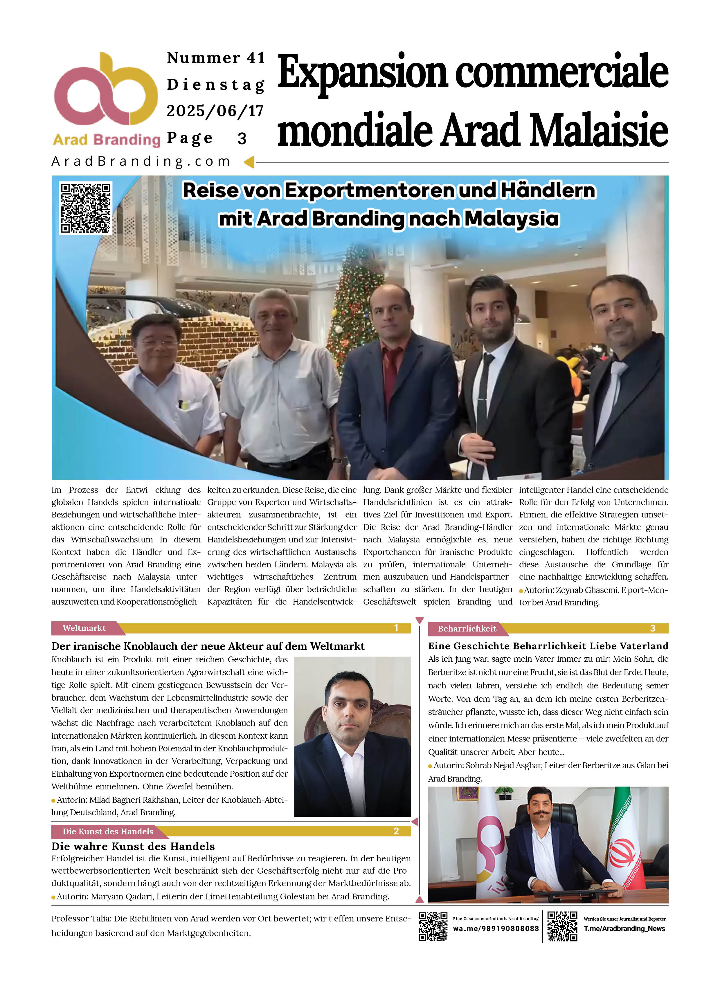- Isfahan, 18. Juni, 16 Uhr: Anbindung über Arad Branding Software und Aktivitätsmethoden, aradbranding.com/Eftekhari