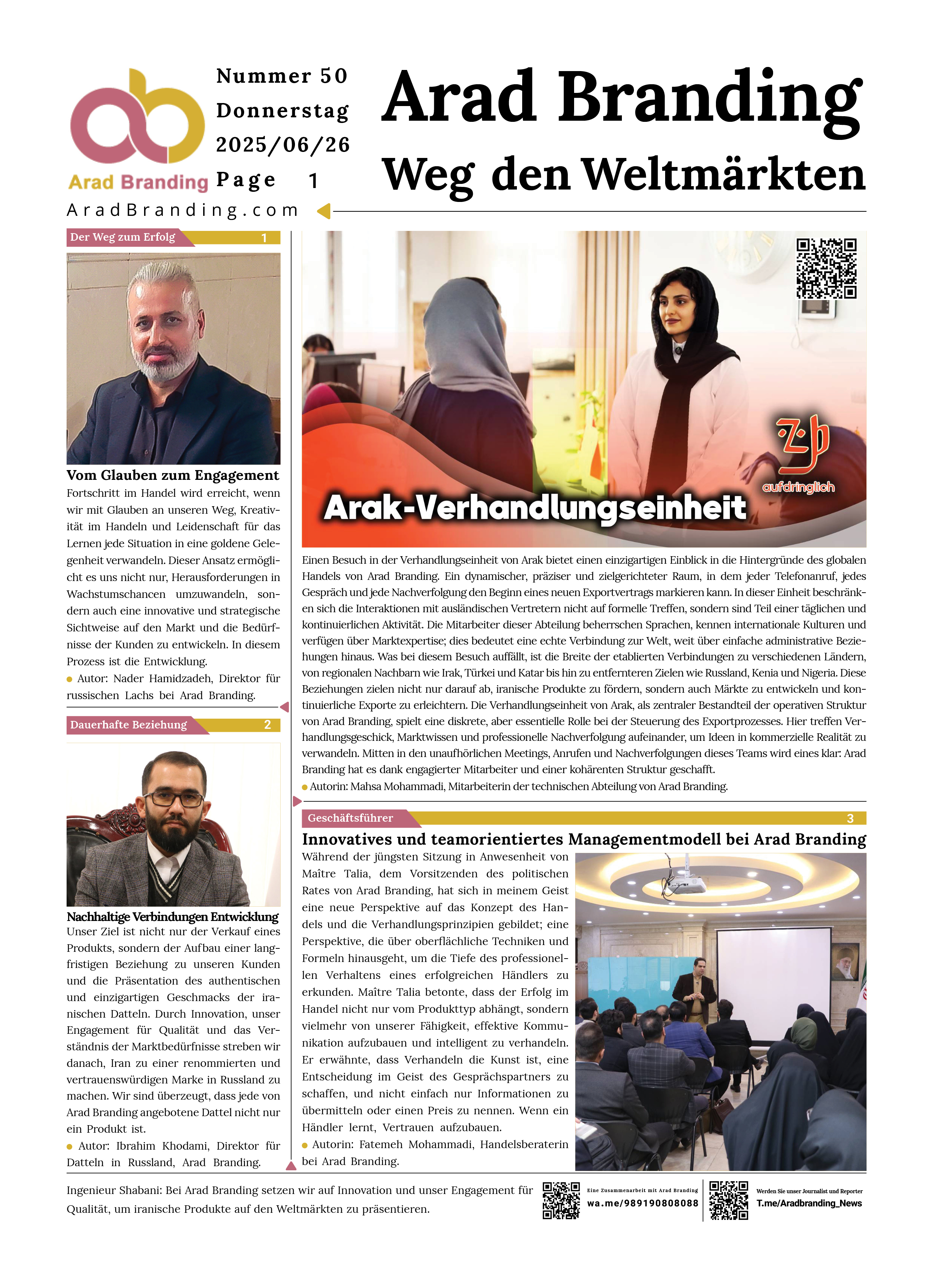 Wenn du Inhalte für die Veröffentlichung in der Arad Branding Zeitung einreichen möchtest, sende eine Nachricht an die untenstehende Telegram-ID.