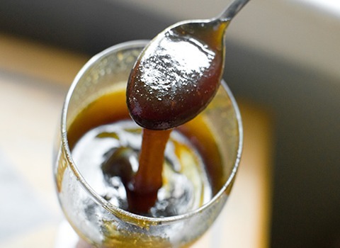 Its dark amber to almost black color gives it a striking appearance, often compared to molasses or dark treacle.