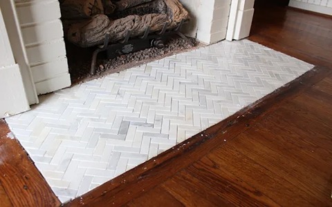 Natural stone tiles are durable and can withstand high temperatures, making them a practical choice for fireplace floors.