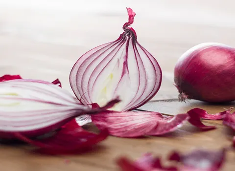 The first thing you'll notice about red onions is their striking hue.