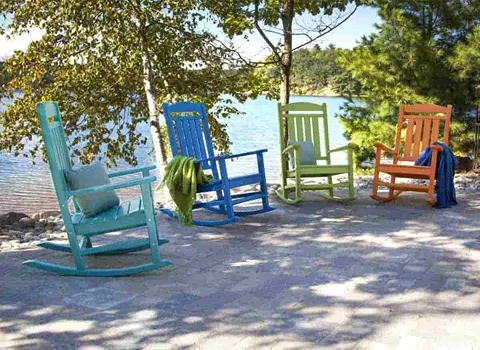 Plastic chairs are naturally resistant to the elements, and they are relatively inexpensive and durable.