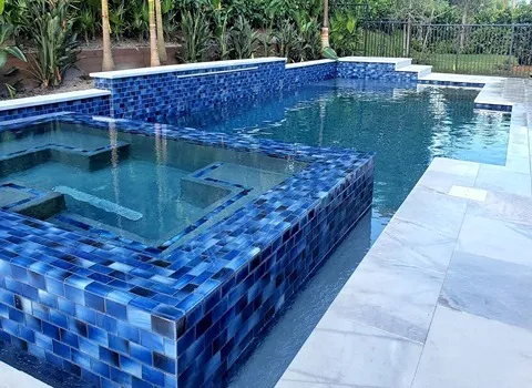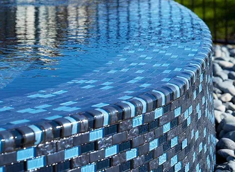 These tiles can be used for a wide range of pool features, including the pool surface, waterline, steps, and spa walls.