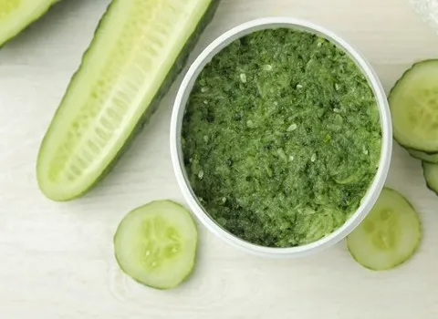 If you are using a cucumber face mask, gently massage the mask into your skin in small amounts.