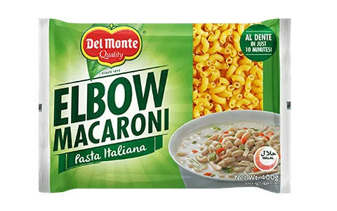 - Del Monte Elbow Macaroni MSG-free with no artificial colors, flavors, or preservatives;