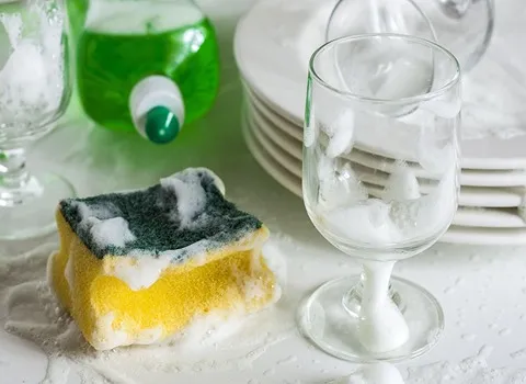 4. Use a sponge or brush to scrub dishes gently, paying special attention to areas with dried-on food or grease buildup.